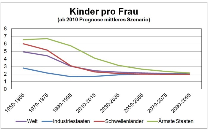 Die diskutierten Annahmen zeigen, dass im Verlauf des 21. Jahrhunderts nicht nur eine deutliche Verlangsamung des Wachstums sondern sogar ein Rückgang der Bevölkerung wahrscheinlich ist. Die viel beschworene „Bevölkerungsbombe“ tritt nicht ein. Im Gegenteil, es eröffnen sich Möglichkeiten mit niedrigeren, nachhaltigem Wirtschaftswachstum steigenden Wohlstand für alle zu schaffen.