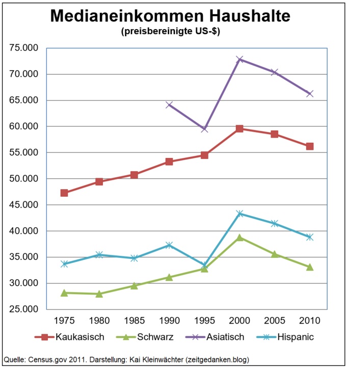 Die anhaltende Wirtschaftskrise in den USA führt zu einer massiven ökonomischen Verschlechterung der Haushalte. Einkommen und Vermögen sinken seit 2000 kontinuierlich. Die besondere Herausforderung liegt in der sehr unterschiedlichen Partizipation der Ethnien am Wohlstand. Ein durchschnittlicher weißer Haushalt hat nicht nur ein deutlich höheres Einkommen sondern besitzt im Verhältnis zu hispanischen und schwarzen Haushalten das 20–fache an Vermögen. Trotz Herausbildung einer „farbigen“ Mittelschicht ist die „colour-line“ nie verschwunden. Mit der Wirtschaftskrise wird sie wieder sichtbar(er) – wie vor den 1970er Jahren.