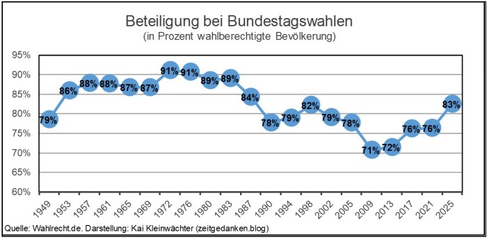 Eine weiterführende Analyse zur Bundestagswahl 2025: Kai Kleinwächter: Deutschland – Ende des bekannten Parteiensystems; zeitgedanken.blog.
