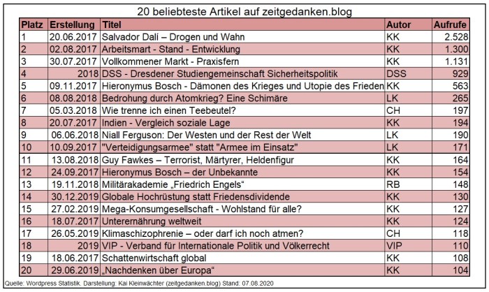 (2) Ziel unseres Blogs kann z.Zt. nicht die Ausdehnung der Reichweite sein. Dazu fehlt die Zeit, angesichts der selbstständigen Dozententätigkeit und des Zusatzstudiums. Realistisch ist eine Stabilisierung der Klickraten.