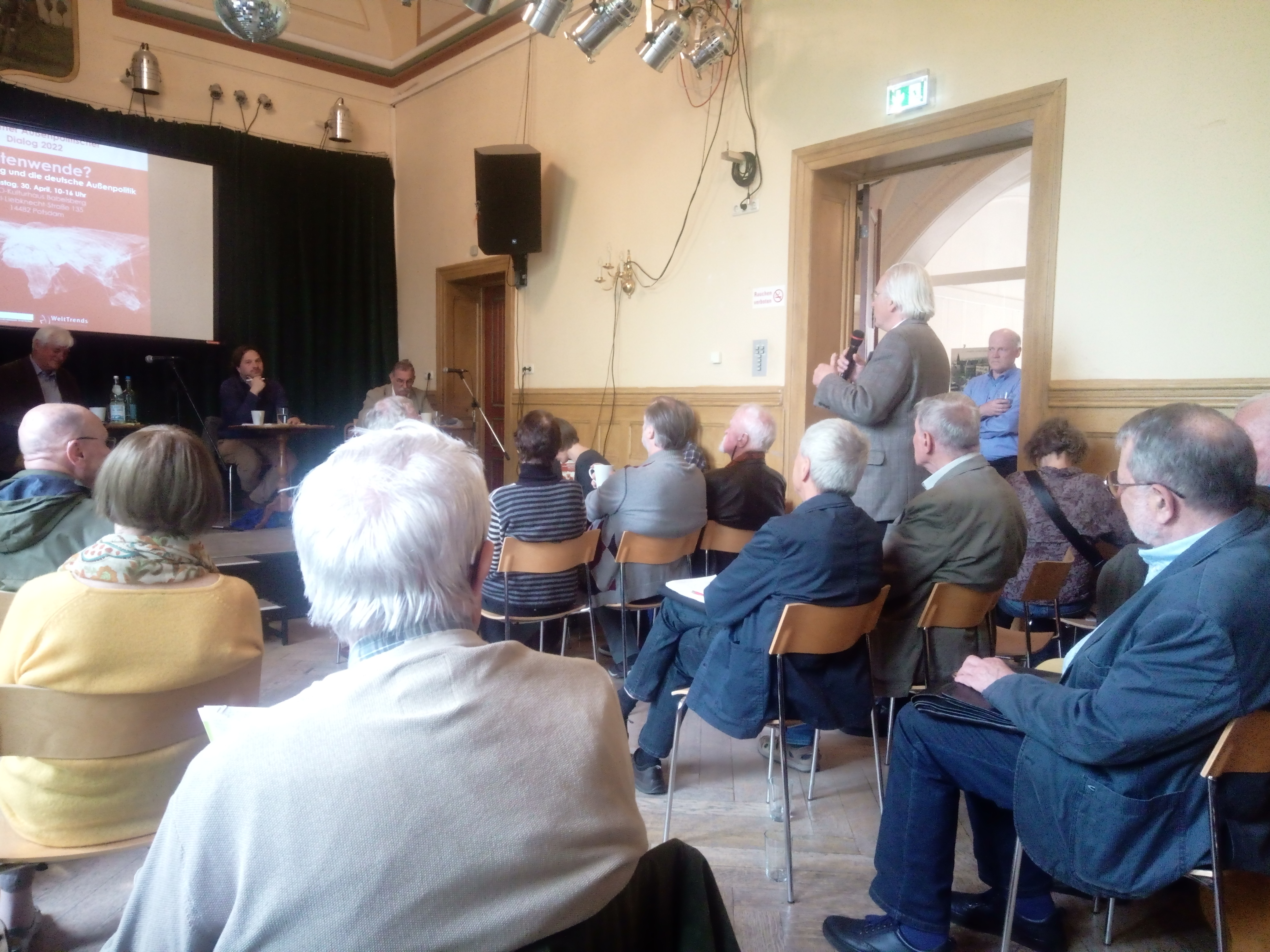 Beim diesjährige „Potsdamer Außenpolitischer Dialog“ zum Thema „Zeitenwende? Die Ukraine-Krieg und die deutsche Außenpolitik“ warfen die Vortragenden zahlreiche Fragen auf. Sie konnten und wollten diese nicht beantworten. Es war Konsens: Fragen sind der Beginn des Weges, die derzeitige Schwäche der Friedensbewegung zu überwinden.