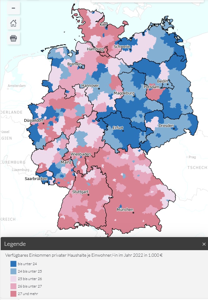 Grafik 2: Jährliches Verfügbares Einkommen privater Haushalte in Deutschland nach Kreisen. Bildschirmfoto. Autor: Bundesministerium für Wohnen, Stadtentwicklung und Bauwesen (2022).