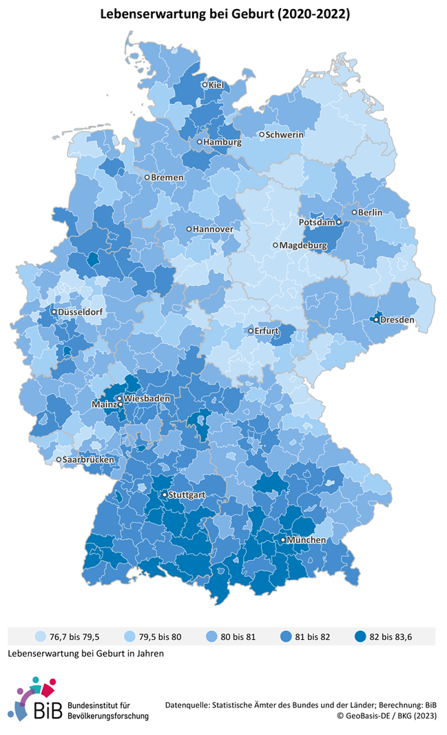 Bundesinstitut für Bevölkerungsforschung (Hg.) (2023): Lebenserwartung Neugeborener in Deutschland nach Kreisen (2020-2022). Wiesbaden.