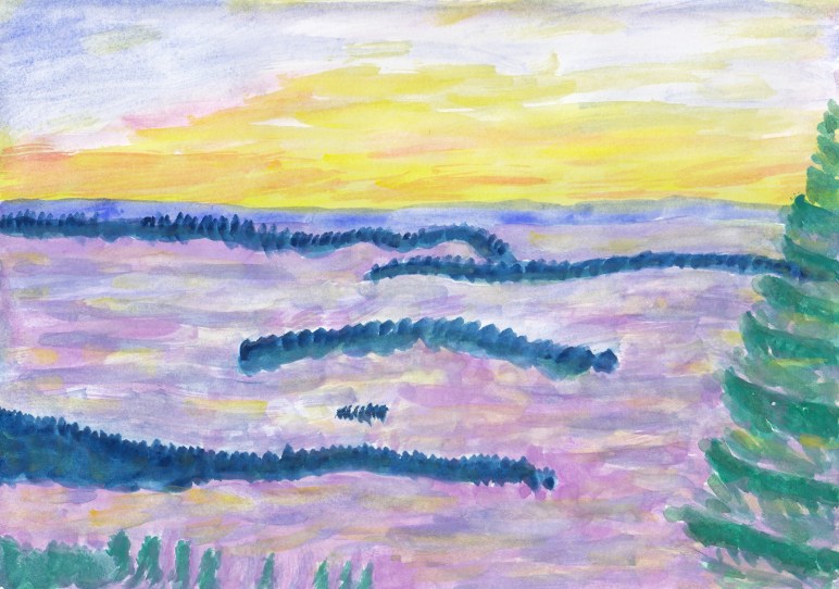 Beim Wandern fiel mir dieses harmonische Motiv auf. Die wechselnden Farben, der lebhafte Himmel und der schöne Wanderweg haben das Bild zum Malmotiv werden lassen.
