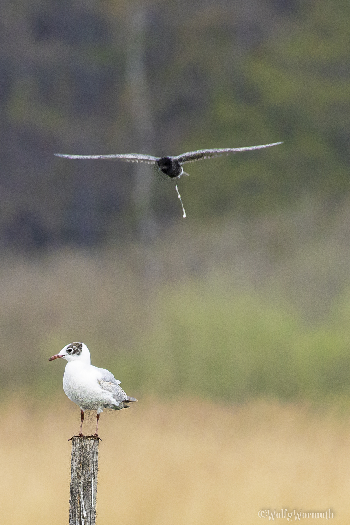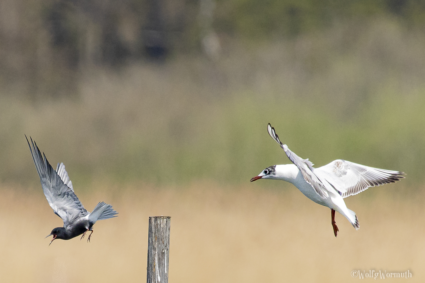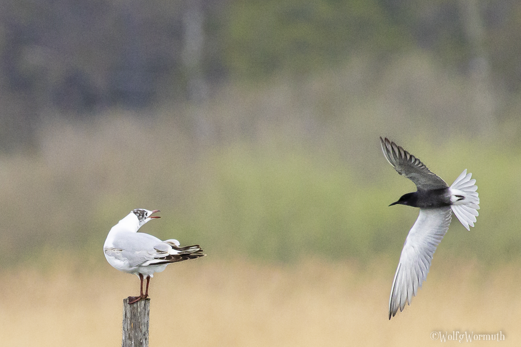 Trauerseeschwalbe und Lachmöwe (Neu Fahrländersee bei Potsdam 04/2022)