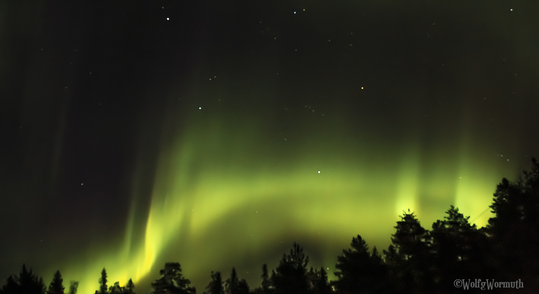 Was dann aber kam, hat uns aus den Socken gehauen – ein wunderschönes Polarlicht. Nun schnell die Kamera fertig machen, Fotos schießen und selbst das Nordlicht genießen. Wir hatten Glück. Am nächsten Abend das gleiche Spektakel noch einmal. Man muss es unbedingt selbst gesehen haben, so sagen wir.