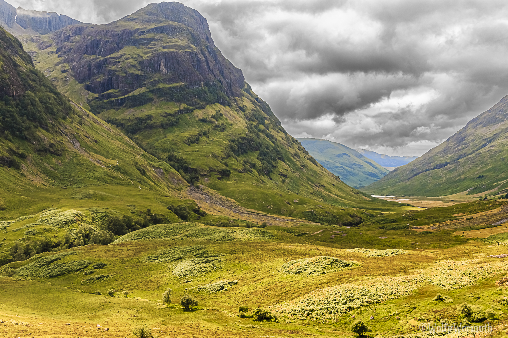 Die Erhabenheit der Berge aufzunehmen, bedarf eines mühevollen Aufstiegs. Es lohnt sich – ein einschneidendes Tal in der schottischen Berglandschaft.