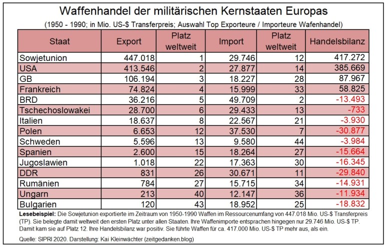 Die Vasallen-Staaten des Warschauer Vertrages wiesen alle (!) gewaltige Defizite im Waffenhandel auf. Die These des „Kaputtrüstens“ traf auf sie mehr als auf die UdSSR zu.